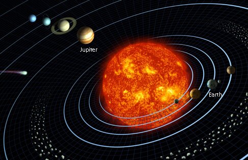 На данный момент в Солнечную систему входят восемь планет ( Меркурий, Венера, Земля, Марс, Юпитер, Сатурн, Уран и Нептун), более 64 их спутника, 100 000 астероидов, газ, огромное количество космической пыли, комет, и множество карликовых планет.